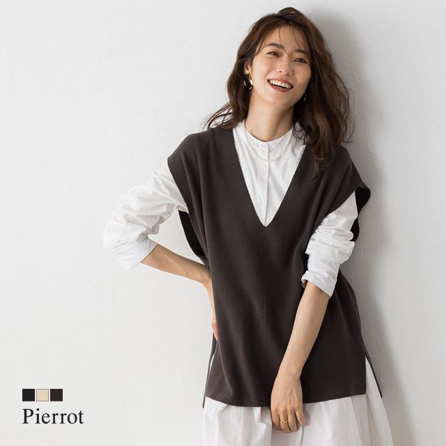 ベスト ミラノリブ Vネック きれいめ レーヨン混 ニット レイヤード 重ね着 黒 白 ブラウン 秋 レディース B2103 Pierrot ピエロ Yahoo 店 通販 Yahoo ショッピング
